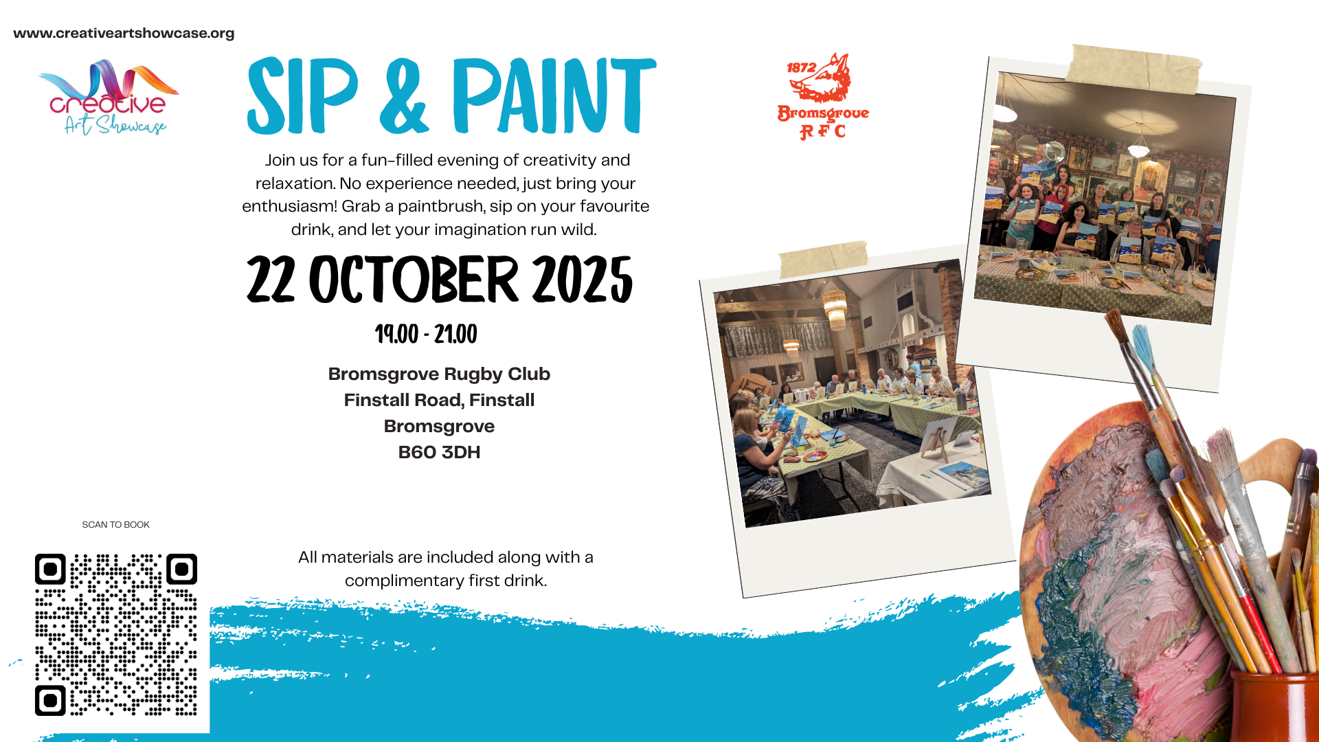 Welcome to Sip & Paint at Bromsgrove Rugby Football Club! Get ready to unleash your inner artist on October 22, 2025 at 7:00 PM (Europe/London time). Join us for a fun-filled evening of creativity and relaxation. No experience needed, just bring your enthusiasm! Grab a paintbrush, sip on your favourite drink, and let your imagination run wild. Whether you're a seasoned painter or a beginner, this event is perfect for everyone. Don't miss out on this chance to socialize, unwind, and create a masterpiece. See you there!